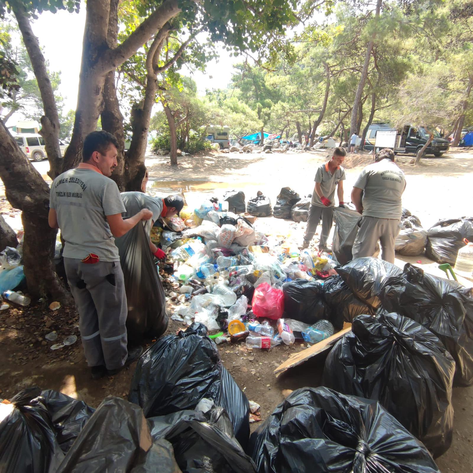 Sahillerde, ormanlık alanlarda ve yol kenarlarında biriken çöpleri temizleyen belediye ekipleri, rutin olarak yaptığı mıntıka temizliği çalışmalarını da sürdürüyor.